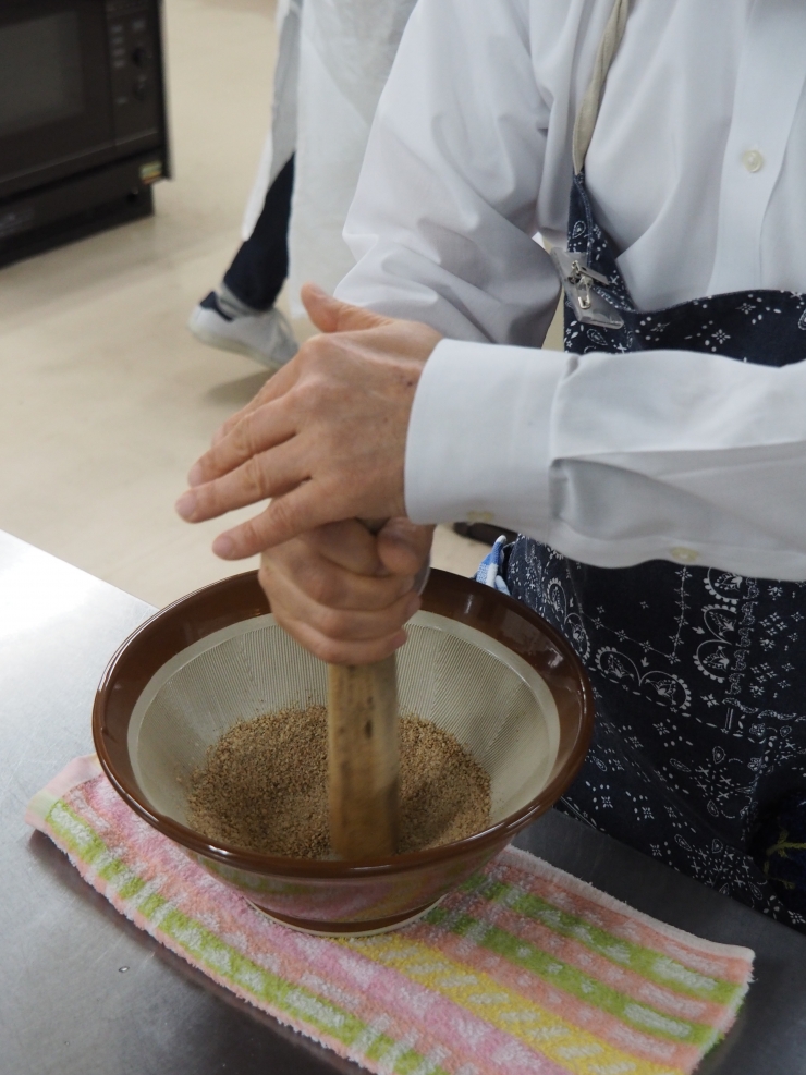 そしてすり鉢にすり棒でごまのすり方を練習し、和え衣を作り、和えました。ごまの香りも楽しみましょう。